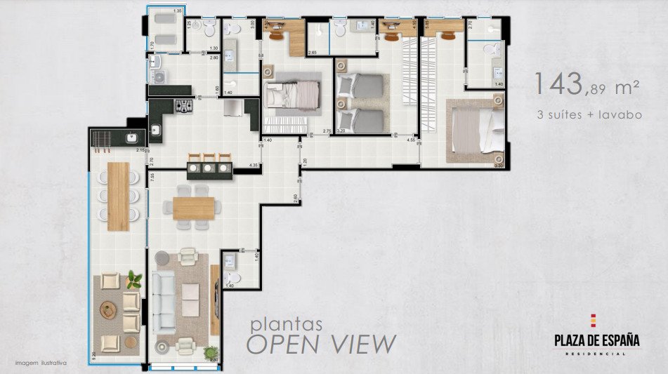 - Área Privativa: 143,89 m²